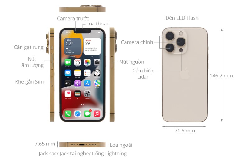 Bạn sẽ hoàn toàn bị chinh phục trước khung hình rực rỡ đầy lôi cuốn của iPhone 13 Pro, màn hình OLED 6.1 inch độ phân giải 1170 x 2532 Pixels, dải màu rộng hiển thị màu sắc chân thực tựa như cuộc sống, độ tương phản cao cho từng chi tiết đầy tự nhiên và sống động, thu hút thị giác trong từng giây phút trải nghiệm.