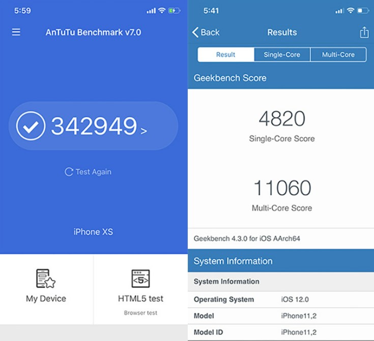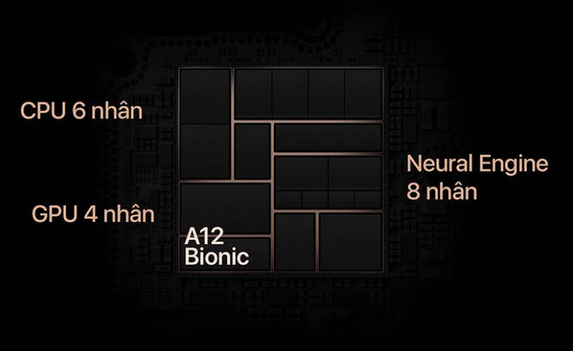 Apple A12 Bionic được xây dựng trên tiến trình 7nm đầu tiên của hãng với 6 nhân giúp iPhone Xs có được một hiệu năng “vô đối” cùng khả năng tiết kiệm năng lượng tối ưu