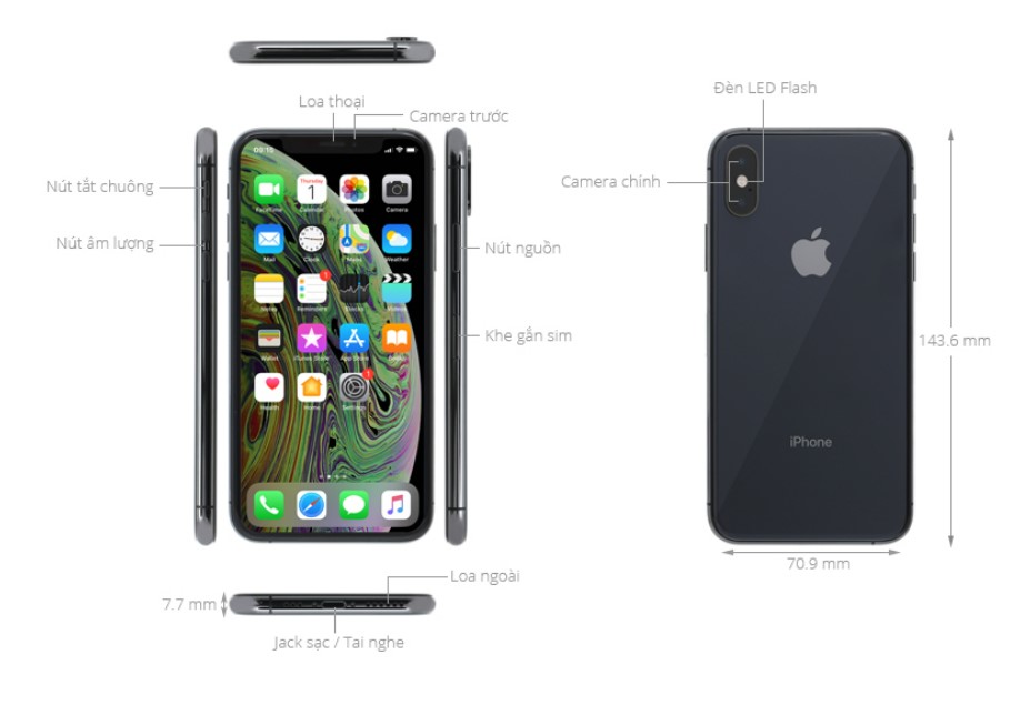 iPhone Xs được thừa hưởng vẻ đẹp từ người đàn anh của mình là chiếc điện thoại iPhone với phần khung được làm từ khung thép không gỉ kết hợp với 2 mặt kính cường lực cao cấp.